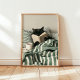 Póster Black Cat reading book in bed
