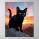 Póster Black Cat Silhouette at Sunset Wall Art