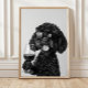 Póster Black Cockapoo Drinking Wine Wall Art, Black and
