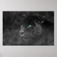 En las profundidades de la oscuridad, emerge un jaguar negro y elegante, con su forma cubierta de tonos monocromos. Sin embargo, en medio de la sombría silueta, sus ojos brillan con un verde intenso y penetrante, irradiando un aura de mística y poder.