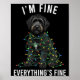 Póster Black Labradoodle Christmas I'm Fine Everything Is