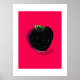 A bold and playful illustration of a black strawberry on a bright fuchsia background. This minimal and vibrant artwork adds a modern pop touch to any space — perfect for design lovers and color enthusiasts.