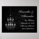 Elegant wedding and stationery set features black damask scroll background with white crystal chandelier dangling light fixture silhouette, perfect for a formal, elegant, traditional winter wedding or for any season!