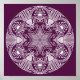 Esta mandala blanca se sienta sobre un fondo morado oscuro y cálido. El color es profundo y refinado. Parte de la colección Howlsplann Mandala.