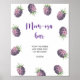 Carta de invitación a la ducha de bebé con ilustracion acuático de mora negra. El texto dice "un bebé dulce de berry está en camino". Elementos coincidentes disponibles.
