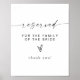 Este letrero reservado para bodas presenta un moderno tipo de letra manuscrito bohemio y un sencillo diseño minimalista, así como las palabras "reservado a la familia del novio". La sencilla combinación de color blanco y negro lo convierte en el complemento perfecto para cualquier evento. Usa este poster para tu recepción nupcial, ducha de novia, fiesta de retiro, etc. Edite *most* frases para satisfacer sus necesidades.