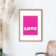 "LOVE" blanco y texto personalizado negro | Póster del Día de San Valentín en rosa intenso. Diseño moderno y trendy. Agrega tu propio texto, por ejemplo, amo a los gatos, amo a los perros, amo la pizza, amo a mi jefe, amo a mi novia, amo a mi novio, amo a mamá, amo a papá, amo las películas, amo mi cama, amo los deportes... etc. Es un regalo hermoso para el Día de San Valentín, pero también para otras ocasiones. Haz clic en el botón "Personalizar" para cambiar el color de fondo, los estilos de fuente y el color de la fuente.