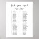Elegante gráfico de asientos Boda. Texto manuscrito simple en blanco y negro.