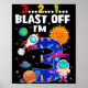 Póster Blast Off I'm 3 Years Old 3rd Birthday Spaceship A