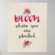 Un poster perfecto para el cambio de hogar o para la universidad: florecer donde uno está plantado.