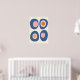 A striking piece of Mid-Century Modern inspired graphic art featuring four organic, pebble-like shapes with concentric circle patterns. The sophisticated palette of deep navy blue, soft pastel pink, and bright apricot orange creates a playful yet elegant retro vibe. This artwork is perfect for adding a preppy, colorful, and minimalist statement to any living room, study, or bedroom styled with vintage or contemporary furniture.