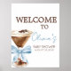 Póster Blue Bow Espresso Martini Baby Shower Welcome Sign