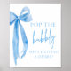 Celebra con floritura con nuestro cartel "Blue Bow Pop The Bubbly She's Get A Hubby". Con un encantador diseño de arco azul, este cartel le da un toque elegante y lúdico a cualquier evento pre-boda. El divertido mensaje invita a los invitados a brindar y disfrutar de la celebración mientras la futura novia se embarca en su nuevo viaje. Impreso en papel de alta calidad con colores vivos y un acabado suave, está disponible en varios tamaños para adaptarse a su lugar de celebración. Perfecto para duchas de novias, fiestas de compromiso o recepciones de bodas, este cartel combina un espíritu festivo con un estilo sofisticado.