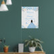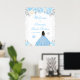 Este elegante y glamoroso cartel de bienvenida de 16 dulces de invierno presenta una hermosa princesa con el pelo oscuro y la piel oscura en un vestido de bola azul. El texto combina el guión manuscrito y las fuentes sans serif modernas para un aspecto elegante y sofisticado. Los arreglos florales, copos de nieve y confitis de plata crean la perfecta combinación de rústico y moda. Gráficos de www.etsy.com/uk/shop/SunflowerDayLove