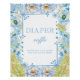 Póster Blue Floral & Bow Baby Shower Diaper Raffle