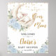 Póster Blue Floral Bunny Rabbit Moon Baby Shower Welcome