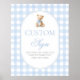 Póster Blue Gingham Bear Customized sign