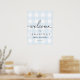 This welcome sign features a timeless gingham design with a modern calligraphy welcome heading. The sign can be customised to suit any event.