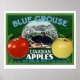 Etiqueta de arte vintage para manzanas canadienses Blue Grouse.