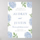 Póster Blue Hydrangea Classic Border, XL Wedding Welcome