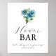 Póster Blue Hydrangea Wedding Flower Bar Signs