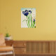 Impresión de un dibujo de una acuarela japonesa de un iris azul profundo, mejorado digitalmente