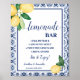 LEMONS BLUE MEDITERRANEAN LEMONADE BAR WEDDING BRIDAL SHOWER SIGN. Change text to the design. For additional changes (font color, font style, move elements), click on personalize, scroll down, and click on the link "Edit using Design Tool" / "Customize with Design Editor" - Check the collection for all matching designs!
