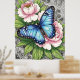 Póster Blue Morpho Butterfly Floral Botanical Art