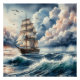 Póster Blue Ocean Wave Boat Watercolor