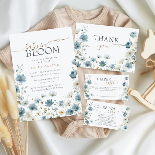 Blue Preppy Flowers Watercolor Baby ShowerDiseñado por Zakreva Olha