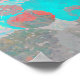 Póster Blue red art of romantic floral / flower pattern