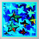 Una fascinante pintura de un cielo estrellado azul, con estrellas azules brillantes y un cielo azul creciente. Comprar!
