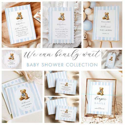 Blue Stripes Bear Theme Baby ShowerDiseñado por Adrienn Maier