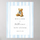 Póster Blue Stripes Bear Baby Shower Welcome Poster