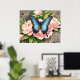Póster Blue Swallowtail Butterfly Floral Botanical Art