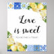 Póster Blue Tile Lemons Love es Sweet Tret Favor Rótulo
