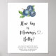 Carta de invitación a la ducha de bebé con ilustracion acuático de arándanos. El texto dice "un bebé dulce de berry está en camino". Elementos coincidentes disponibles.