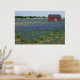 Póster Bluebonnets y un granero rojo