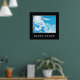 Los azules bailan olas azules de mar blanco poster de impresión motivacional, con olas turquesa azul y blanco en el océano, el cielo, el sol y las nubes en un marco blanco y negro y el texto Blues Dance. Se puede cambiar el texto y hacerlo desmotivacional.