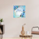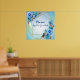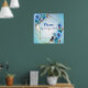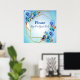 Bouquets de Cornflowers azules con acuarelas con capuchas rojas y hojas verdes doradas sobre una mezcla creativa de un fondo azul turquesa envuelto en un marco geométrico brillante dorado para personalizar tu libro de visitas.