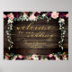 An extra large 54 by 40 inch poster board with a rustic vintage reclaimed barn board wood background. A bough of deep burgundy and blush pink florals cascade amongst silver greenery garlands and romantic candle-lit floral bouquets bursting with peony flowers and sprays of floral artistry.