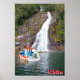 A fishing boat pictured against the backdrop of a waterfall; Quintupeu Fjord, Northern Patagonia, Chile - a beautiful corner of South America where the Andes plunge into the Pacific Ocean. [Our travel photography and designs are available as gifts for the home, cards, jigsaw puzzles, wall art and more]