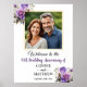 Este signo de bienvenida al aniversario del Boda tiene una elegante caligrafía de escritura, un marco dorado con una foto especial y rosas morados. Puede personalizar este signo con los detalles de su Boda Aniversario.