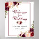 Poster de bienvenida de Watercolor Floral Burgundy Marsala Boda