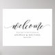 Letrero de bienvenida para boda con caligrafía moderna - Versión de caligrafía Flair 2 (mostrada en negro): Saluda a tus invitados con este hermoso y divertido letrero de bienvenida con caligrafía. Cambia tus nombres y fecha en la parte inferior. También puedes cambiar el color del diseño haciendo clic y eligiendo un nuevo color de relleno. Mueve todo... elige un tamaño de cartel diferente.