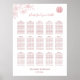 Este poster contemporáneo de la gráfica de asientos de bodas chinos presenta un polvoriento símbolo de felicidad doble rosa y una rama de arte de línea floral rosa sobre un fondo blanco. Con textos personalizados para 150 nombres.