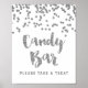 Poster de letreros de barra de caramelos para la ducha de bebé, la ducha de novia o el boda con un patrón de confeti blanco y plateado con letras de estilo manuscrito. Perfecto para una ducha de bebé, un boda o una ducha de novia.