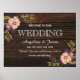 Póster de boda de bienvenida de madera rústica con flores rosadas de acuarela, sencillo, campestre, guión moderno.