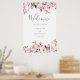 Boda poster de bienvenida con flores rosadas. Es fácil cambiar el texto.