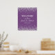 Elegante morado con brillante purpurina boda de plata poster con texto, "Bienvenidos a nuestro boda". Personalizado con los nombres de la novia y el novio y la fecha de su boda.